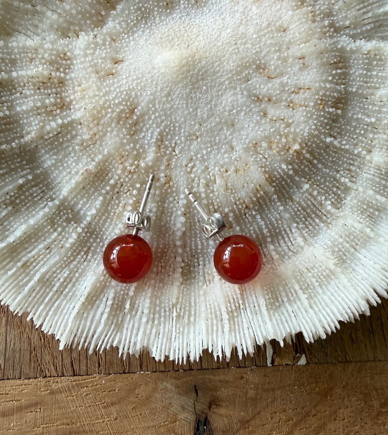 Carneool oorbellen 8 mm zilver 925 gehalte
