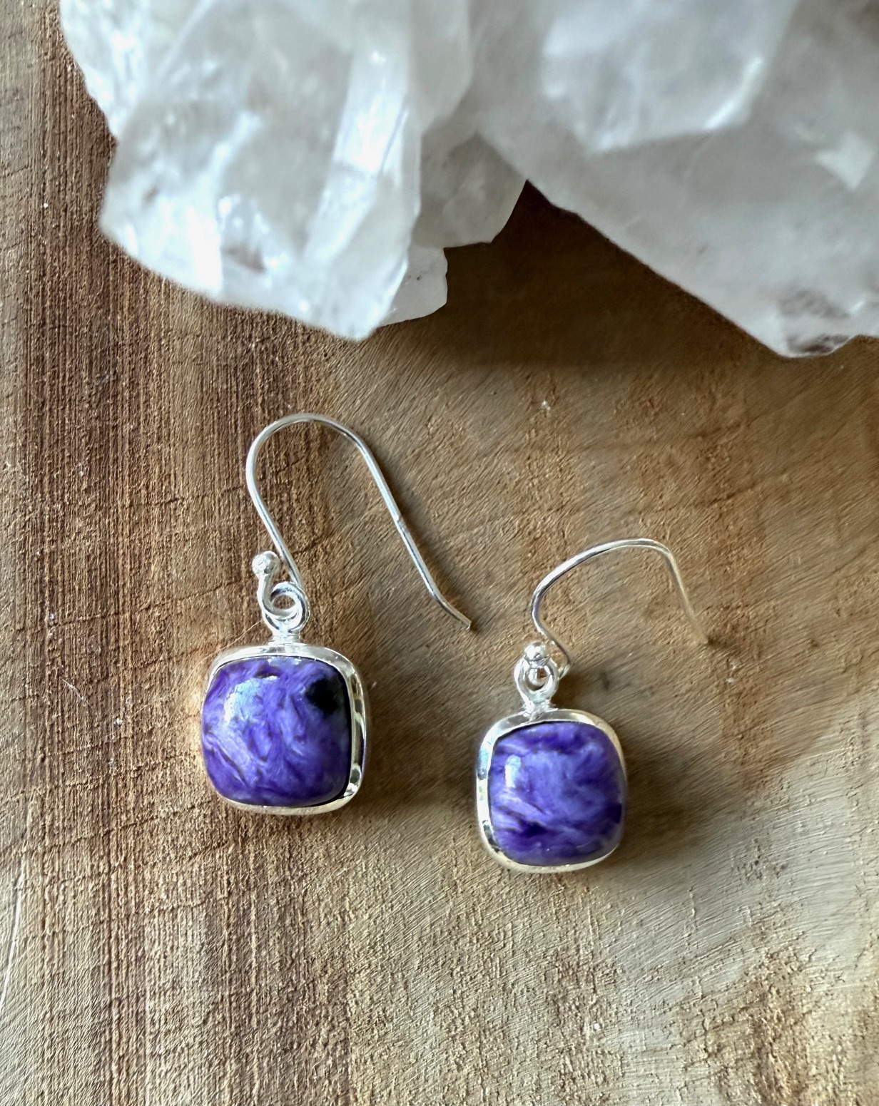 Charoiet oorhangers gezet in echt zilver 925 gehalte