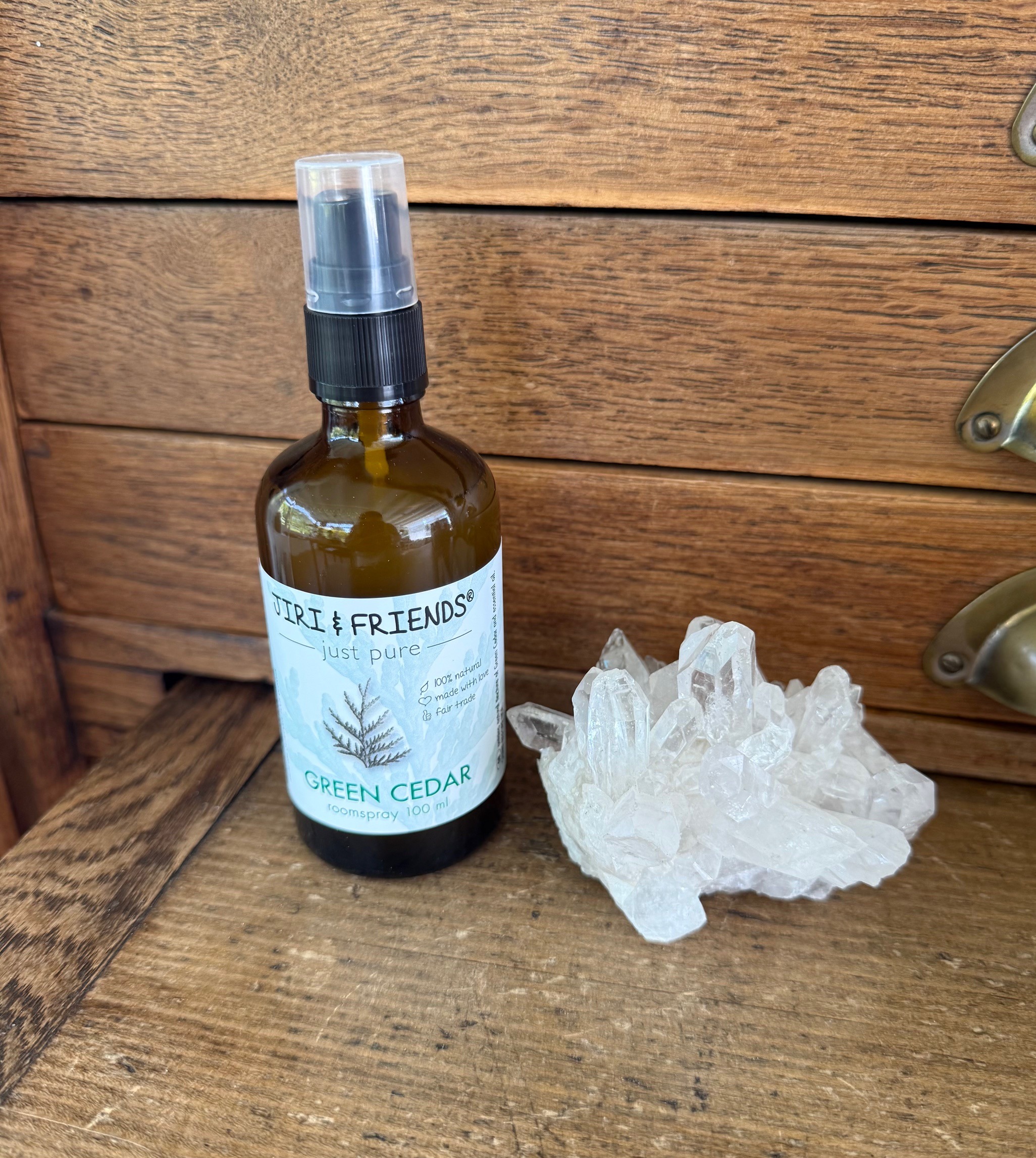 Aromatherapy spray Green Cedar is op basis van een natuurlijke tinctuur van green cedar, hydrolaat en etherische olie.
