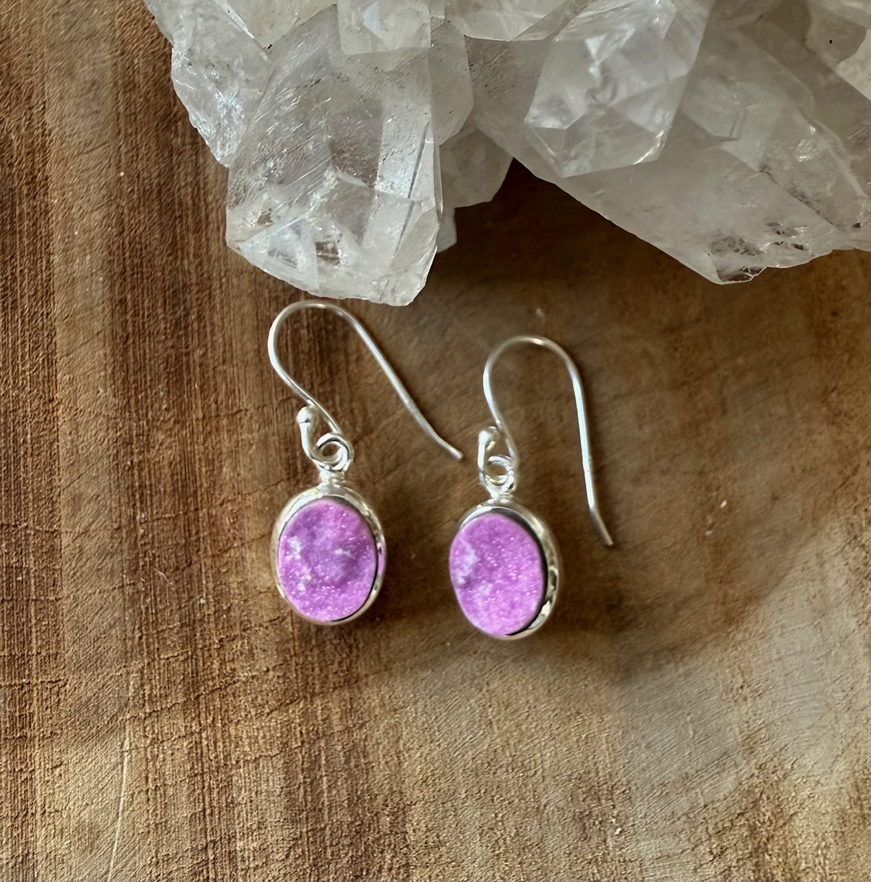 Deze oorhangers zijn 3 cm lang en de Kobalt calciet hangers zijn 1 x 1.3 cm