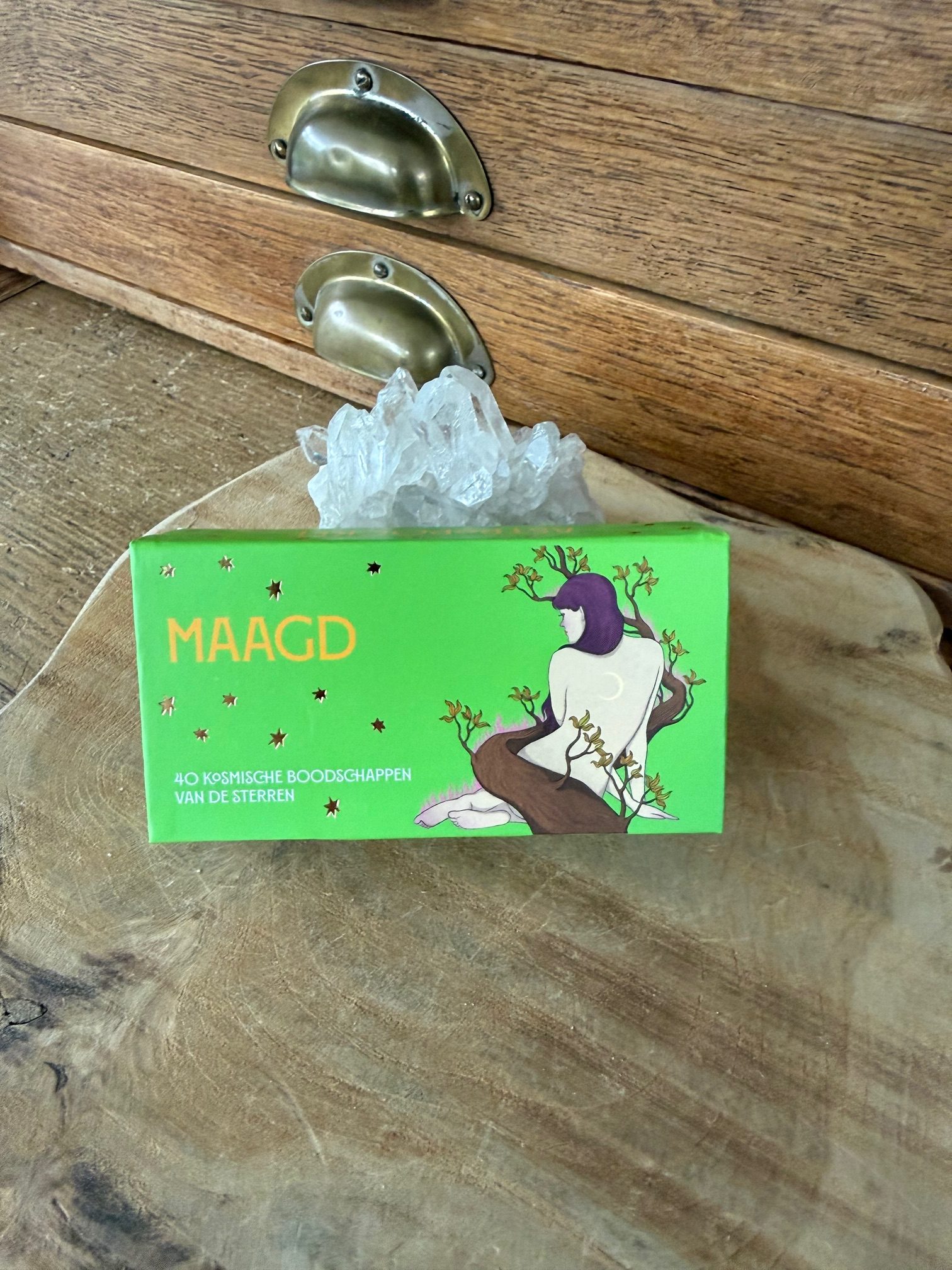 Astro Pocket Maagd is een inspirerende kaartenset die speciaal is ontwikkeld voor iedereen met het sterrenbeeld Maagd. Deze compacte box bevat kaarten met inzichten, affirmaties en praktische tips die passen bij de rustige, zorgzame en analytische aard van dit sterrenbeeld. De Astro Pocket Maagd helpt om helderheid, balans en zelfvertrouwen te versterken. Ideaal om bij je te dragen, als dagelijkse inspiratie op je werkplek of als betekenisvol cadeau.