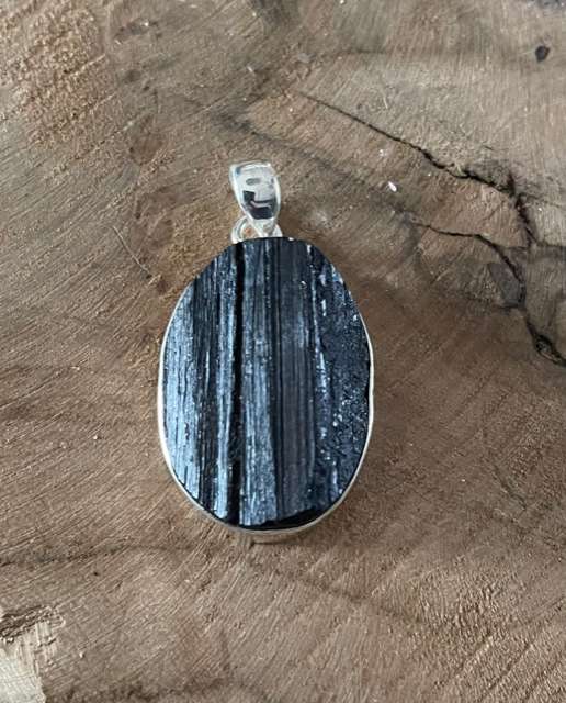 Toermalijn hanger ruw gezet in zilver 925 gehalte aantal