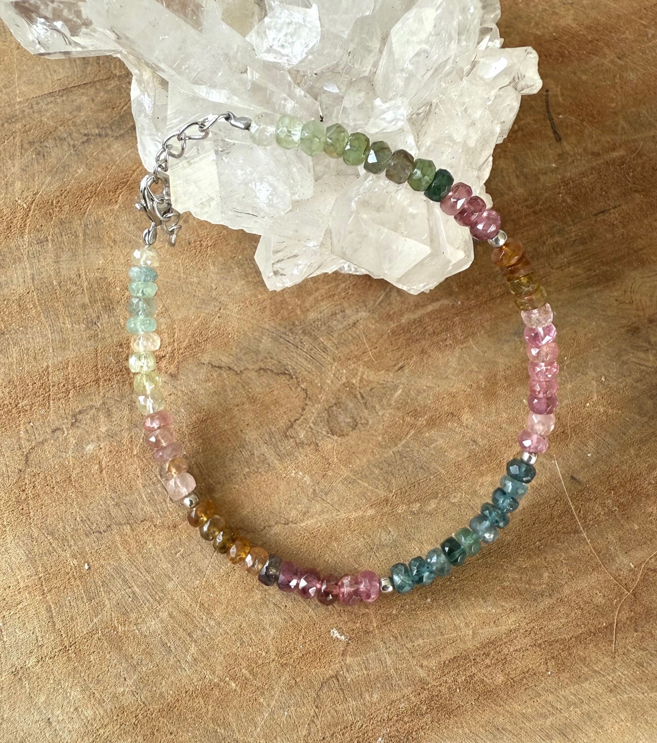 Toermalijn multi armband aan een echt zilveren slot 925 gehalte